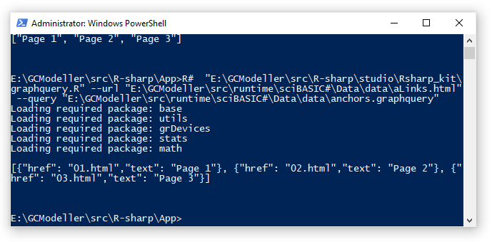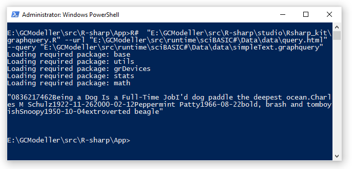 可以看到,在上面的R#脚本代码之中,我们最开始先执行一个http请求得到目标文档,然后解析为DOM文档树,最后在这个DOM文档树的基础上执行GraphQuery文本查询