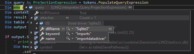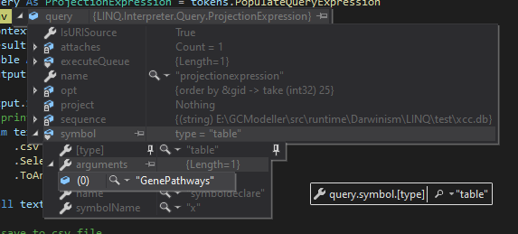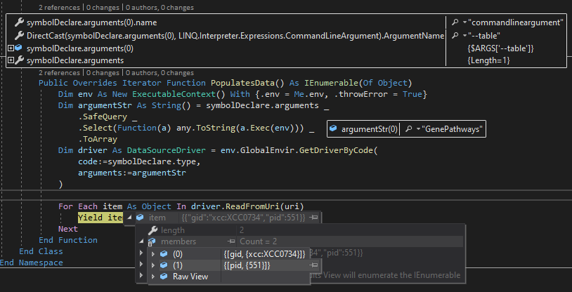 所以,我们就可以通过这样子的类型声明,加载Sqlite数据库之中对应的GenePathways数据表作为我们的LINQ查询操作的数据源了。