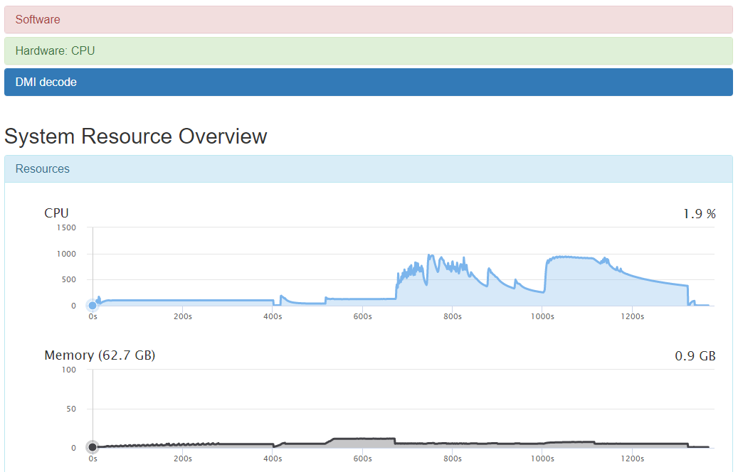 存储CPU的硬件信息data/cpuinfo.js存储系统的所有硬件信息data/dmidecode.js存储系统资源利用率的总览信息data/overviews.js存储了每一个快照时间点上所有正在执行的进程列表data/ps.js存储系统负载的信息data/system_load.js