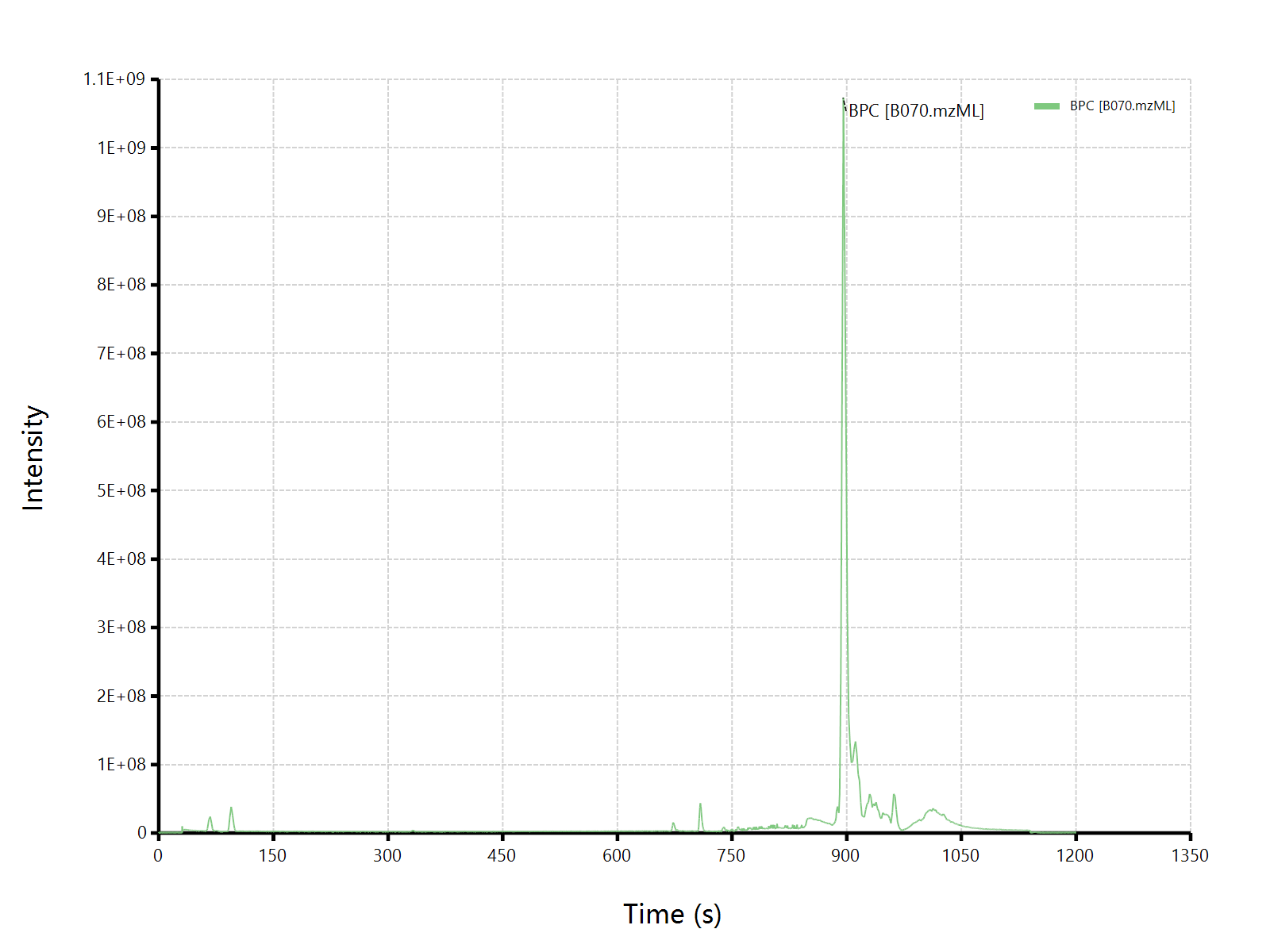 TIC色谱图是将每一个scan时间点上的所有离子的响应度加起来的总和对保留时间作图。BPC色谱图的话,则是每一个scan中最高的信号响应度对保留时间作图。
