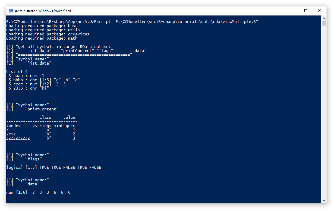R#我已经将上面所提到的RData数据集反序列化过程开放为一个在基础环境之中的api函数,用于支持进行在R#环境之中对R环境中的数据读取操作:R#