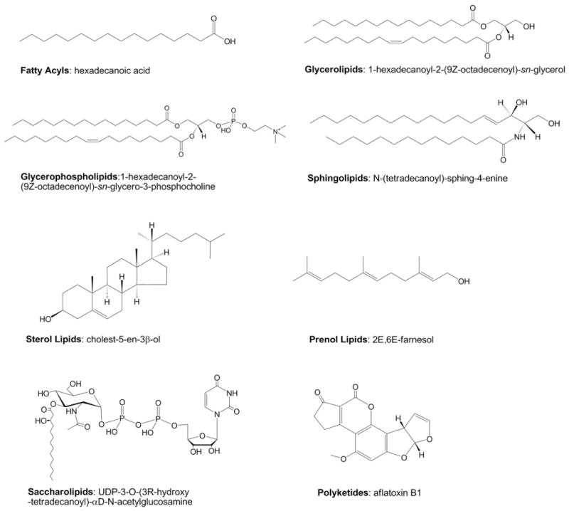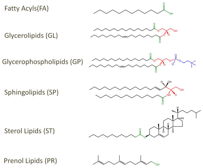 在LipidMaps数据库之中,定义了脂质代谢物的8大类型: