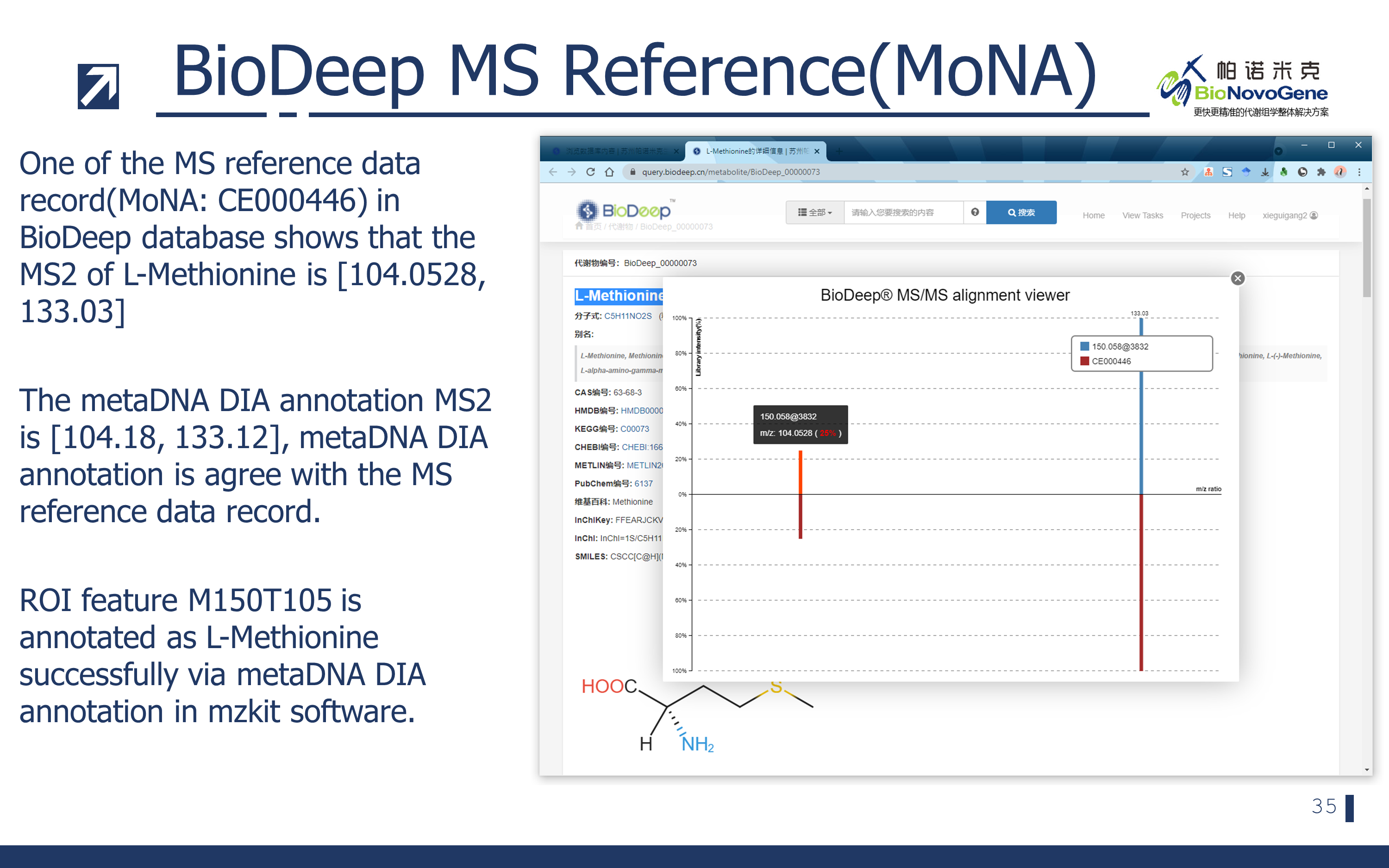 - 对于标准品库数据比对注释方法,基于cos相似度计算的方法非常的经典,得到的具有高分的二级注释结果一般都非常准确。但是目前本方法也会受到标准品费用高昂,并且也并非所有的代谢物都存在有对应的化学合成方法或者纯化方法来获取标准品。所以目前进行依赖标准品库数据的代谢物注释也仅仅能够对1千到两千个代谢物产生注释信息。并且我们进行标准品库注释,一般会限定于某种特定的设备仪器平台上完成,因为质谱数据在不同的仪器平台之间的差异有点大。