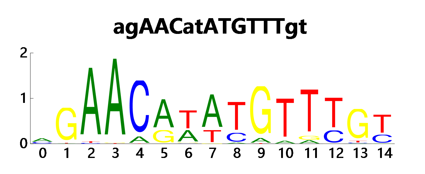 在上面的流程代码之中,seq变量是Fasta序列文件的文件路径。我们在使用read.fasta函数读取完对应的核酸序列之后,就可以得到一个Fasta序列对象集合,然后将这个Fasta序列集合传递进入Motif查找函数之中即可。最后将我们得到的每一个Motif数据都序列化为json文件以及通过plot函数绘制出来。在命令行中执行上面的脚本,我们可以得到大概如下所示的候选输出。和最开始的序列输出比较一下,通过这个方法得到的Motif输出的相似度是非常高的: