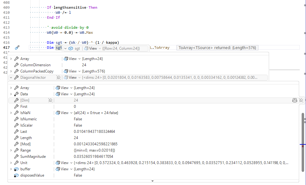 Dim W0 As NumericMatrix = NumericMatrix.Zero(size, size)